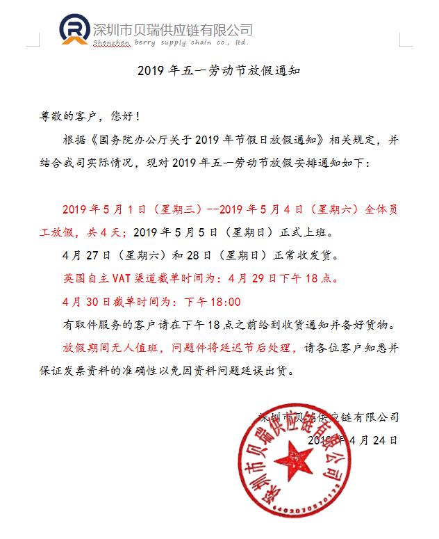 2019年五一劳动节放假通知